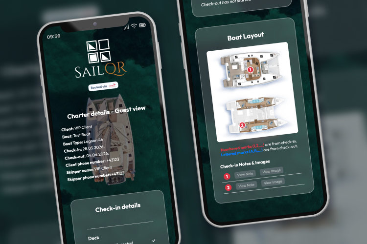 SailQR is a multilingual app designed to simplify check-in and check-out processes from start to finish. Used by charter managers, back office staff, cleaning crews, technicians, and guests, it requires no logins, no sign-ups. Everyone involved has instant access to the information they need, with full real-time visibility into ongoing operations.